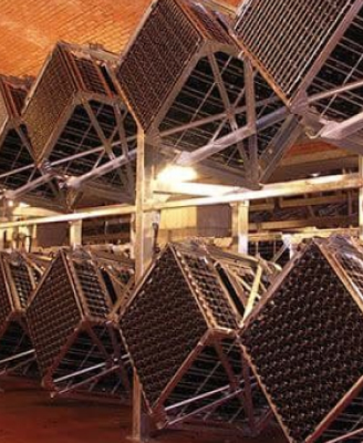 Для сведения осадка на пробку (ремюажа) используется гиропаллет французского производства, он позволяет более быстро и точно проводить эту операцию.