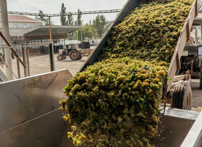 На участке для белых вин используются новейшие вертикальные и горизонтальные винификаторы, с полным контролем температуры брожения.